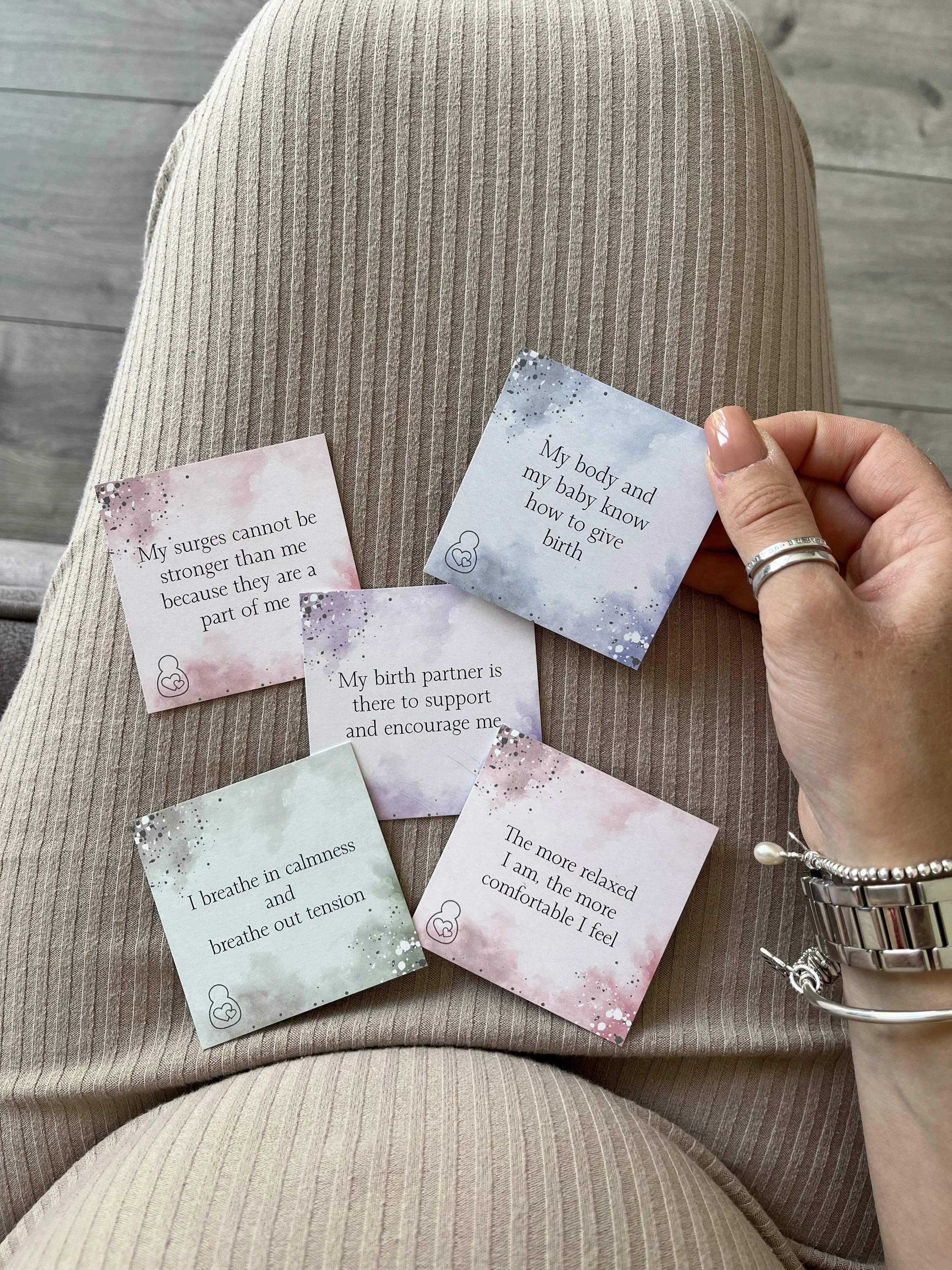 After birth, turn the cards over for 14 positive affirmations for parenthood to remind you how amazing you are.
